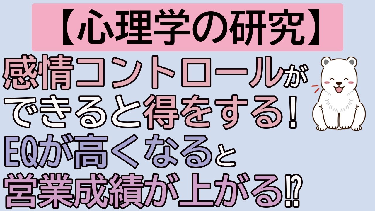 YouTube動画/Movies2026/2/6心理学で解決⁉お悩み相談⑪「心理学の都市伝説を斬る―1/fのゆらぎ」と語る人を時々見ます。 世間では、1/fのゆらぎの成分の入った音楽を聴くとリラックス効果や癒し効果があると言われています。 しかし、そもそも1/fのゆらぎとは何でしょうか? その真実をお伝えいたします。 心理学で、1/fの研究はあるのか? どんな研究があるのか? それを直接質問にお答えする形で動画にしました。 ReadMore YouTube動画/Movies2026/2/2営業とマーケティング~LTV(顧客生涯価値)の上げ方~【総集編】と営業のプロの伊藤さんはおっしゃいます。 現場に携わる専門家をお招きして、専門家同士が対談するYouTube専門家対談企画。 今回は、営業歴20年で合同会社トースティー代表の伊藤さんと営業の心理学についてお話します。 今回のトピックは、「営業とマーケティング思考」についてです。 営業マンはマーケティング思考が必要だと伊藤さんはおっしゃります! マーケティング思考があるかないかで営業の成果も変わる⁉ では、営業マンが身につけないといけないマーケティング思考とは何か? 今回は心理学の研究と現場の ... ReadMore YouTube動画/Movies2026/2/1心理学で解決⁉お悩み相談⑩「心理学の都市伝説を切るー血液型と性格」との発言を巷でよく聞きします。 ABO式血液型性格診断は、世間ではかなり知られています。 各血液型によって性格に違いがあるというものです。 しかし、心理学では血液型と性格には関係があると示されたのでしょうか? 心理学のエビデンスを紹介しながら、血液型と性格の関係性をお話します。 また、血液型性格診断のような都市伝説に近いものを信じることの危険性もお話しています。 ぜひ動画をご覧ください↓ ReadMore HOME > YouTube動画/Movies > YouTube動画/Movies【心理学】感情コントロールができると得をする⁉EQが高くなると営業成績が上がる! 2025年7月8日 Post Share Hatena LINE note URLコピー・EQ(感情指数)を上げると何かあるの?・感情コントロール力を高める方法を知りたい!・相手の感情が分かるようになりたい!EQ(感情指数)やEI(感情知能)という言葉がはやっています。特に感情コントロールを表す言葉ですが、この能力は上げることができます。しかし、EQやEIを上げて何か意味があるのでしょうか?実は、かなり仕事で得することが心理学の複数の研究で示されています。今回は、その一つを動画でご紹介します!ぜひご覧ください↓スポンサーリンク Post Share Hatena LINE note URLコピー -YouTube動画/Movies